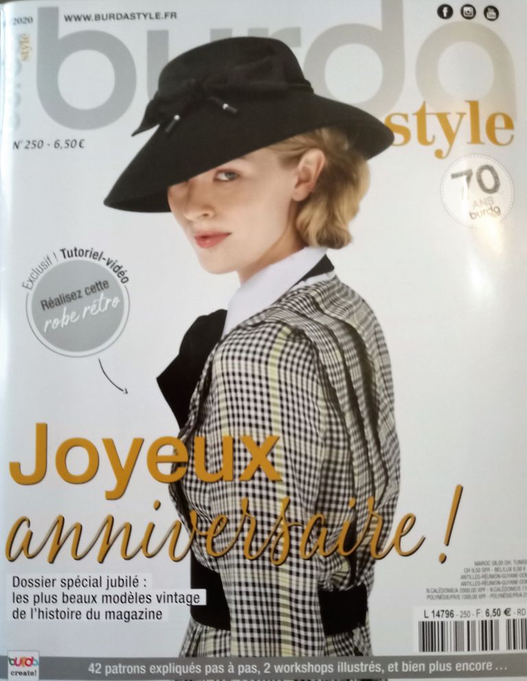 Semaine chargée pour moi, mais ça fait du bien aussi! Pour ceux qui l’ignoraient, j’ai été opéré la semaine dernière pour plusieurs pathologies de la main droite (droitière…). Je suis ravie du résultat, ma rééducation ainsi que mon auto rééducation sont miraculeuses! C’est encore sensible mais gérable! Pourquoi je vous raconte ce petit morceau de ma vie? Quelques fois il faut oser prendre des risques, bon avec la santé cependant la santé c’est plus personnel comme choix. Dans la vie il faut apprendre à sortir de sa zone de confort, pour avancer et se révéler. C’est ce qu’il s’est passé il y a 70 ans pour Aenne Burda qui a révolutionné le monde des couturières, et des mamans au foyer!Pour fêter les 70 ans de la revue, la rédaction nous a créé un numéro jubilé! Je vous en dis plus sous la photo de couverture du magazine.