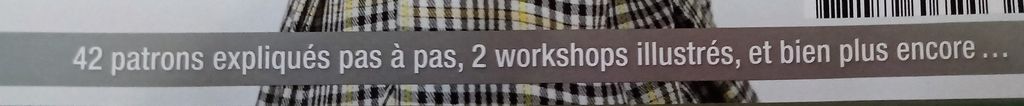 Dans ce bandeau nous apprenons que nous trouverons 42 patrons expliqués en pas à pas. Les deux workshops illustrés à grand renfort de dessins sont présents comme dans chaque numéro. Le « Bien plus encore » me laisse songeuse.