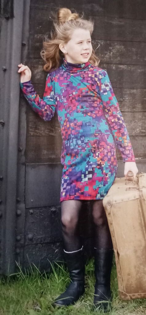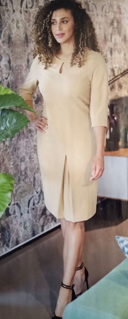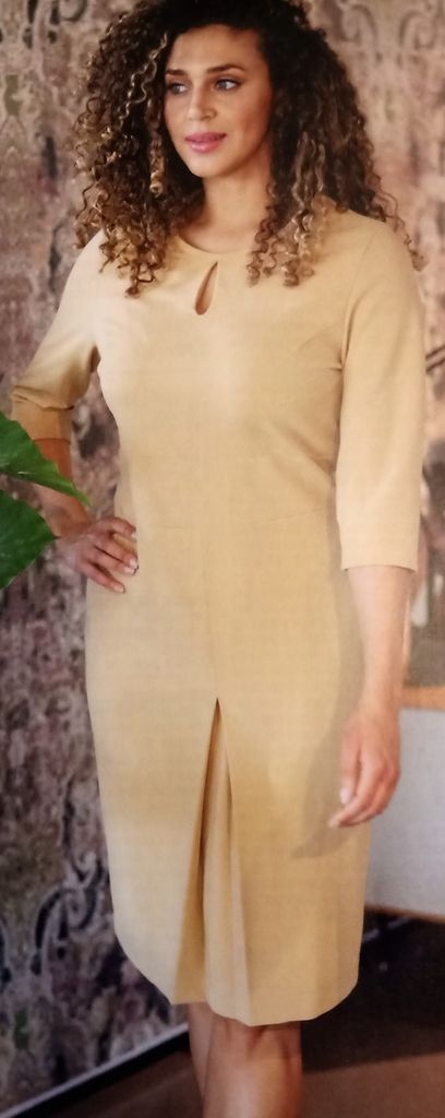 Forcément il y a une robe, Le buste est ajusté à l’aide de pinces de poitrine. Des manches, elle aussi longueur trois quart (je dois avouer que j’adore en temps normal pour pouvoir les remonter gracieusement, mais je fais pareil avec des manches longues!)L’encolure est ronde bordée par un biais elle comporte une goutte pour la touche de raffinement. La jupe elle possède un pli creux sur le devant. La robe se ferme à l’aide d’une fermeture à glissière dans le dos.