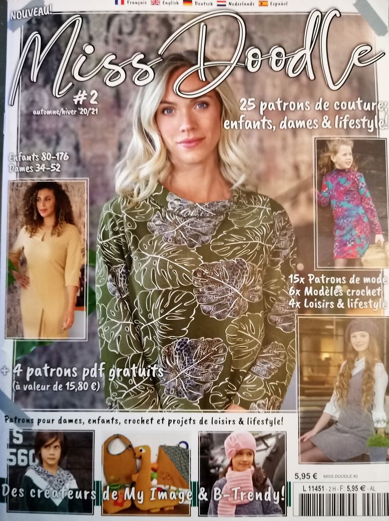 Bonjour à toutes et tous! C’est la catastrophe en ce moment au niveau des revue couture! J’ai cependant trouvé le dernier « Miss Doodle » pour l’ automne et l’hiver 2020/2021. Oui, oui, on peut dire que vu la baisse des températures, cela devient une évidence…. Je doute qu’on ai un été indien… Car je n’ai pas envie d’allumer la chaudière…