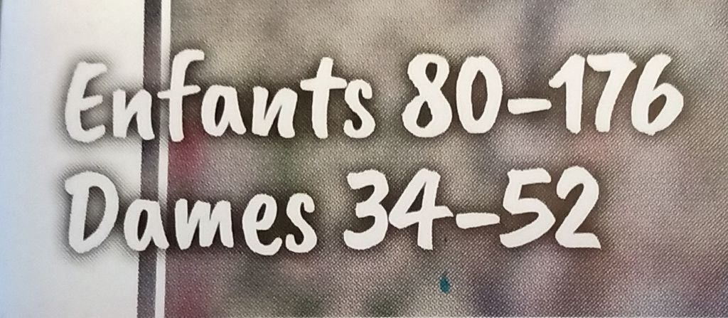 Notez cependant, l’intervalle de tailles, pour femmes du 34 au 52 et du 80 cm au 176 cm pour les enfants. Je préfère le terme femme plutôt que dames pas vous? Tout à l’heure une amie de ma fille de 12 ans m’a dit bonjour Madame…. Je lui ai dit que je préférais qu’on m’appelle Bénédicte, surtout quand il s’agit des amis de mes enfants. Non je ne cherche pas à me rajeunir ( bon peut être)…. Mais je pense que c’est plus facile pour instaurer une relation de confiance avec les autres. Vous avez vu tous les patrons sont dans le même panel de mensurations!