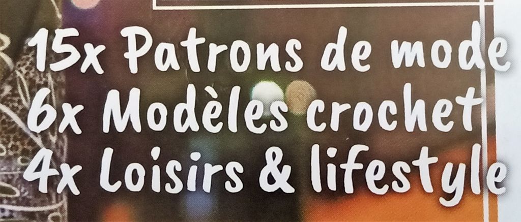 Voilà, lorsque je disait qu’il y a une erreur, il n’y a pas 25 patrons de mode mais 15, 4 dans la rubrique accessoires enfants que la rédaction a traduit par loisirs et lifestyle. Pour finir nous avons 6 modèles à crocheter.