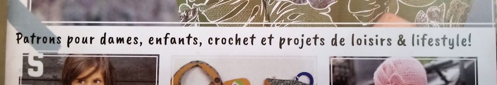 Ce Bandeau est en bas de couverture, et il résume parfaitement le contenu de ce magazine. Des patrons pour Femmes, pour Enfants, mais aussi du crochet et des projets de loisirs et lifestyle (ce sont les accessoires pour enfants).