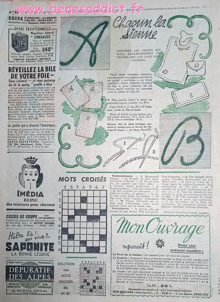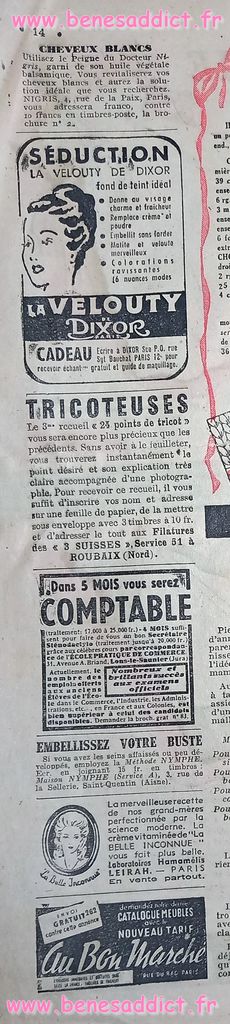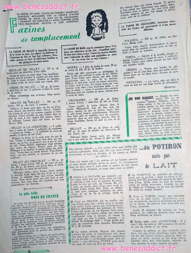 Vous trouverez de la couture, du tricot, du crochet, des recettes de cuisine, mais aussi du bricolage, des tranches de vies de l’époque compliquée. Nos grands parents ont connus les restrictions, vous le verrez dans un article avec des solutions pour palier le manque de farine.