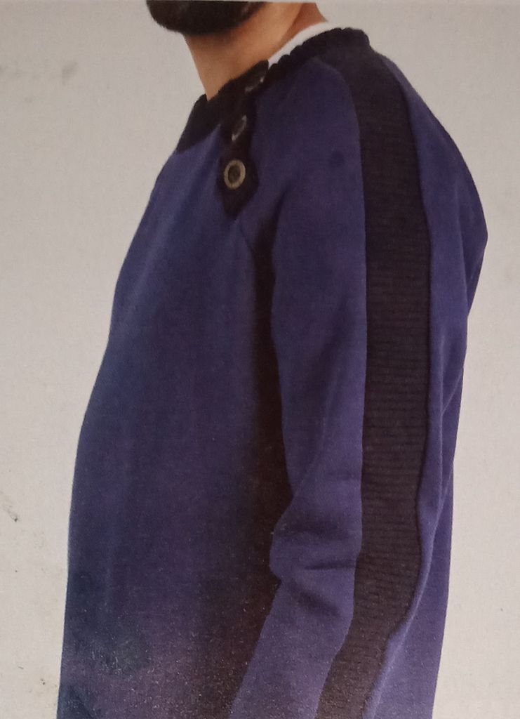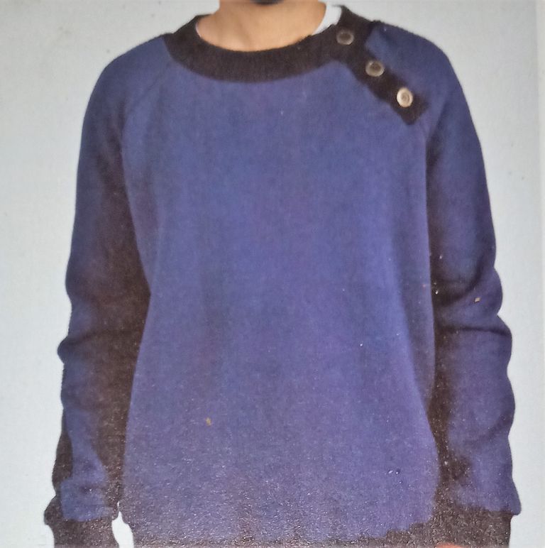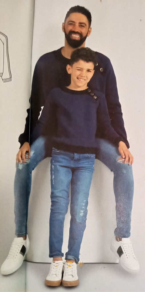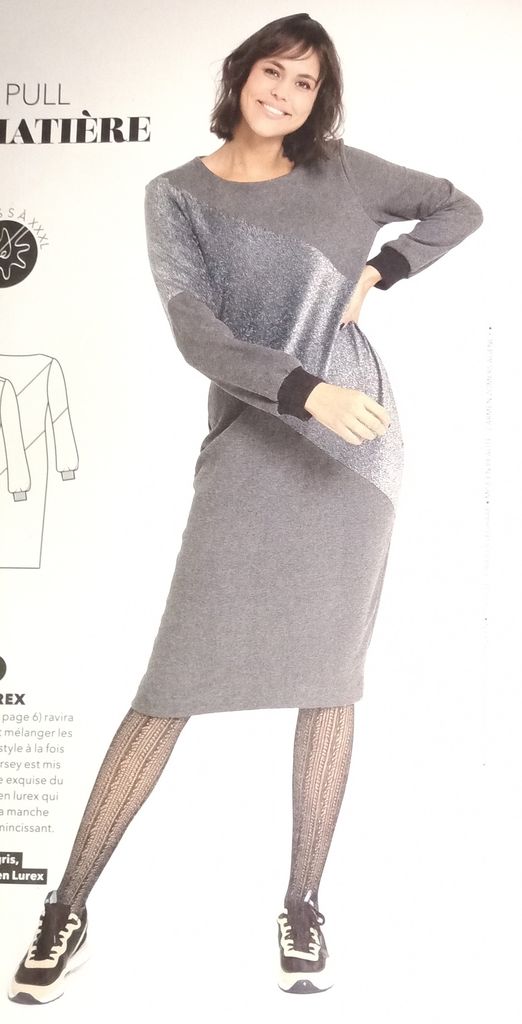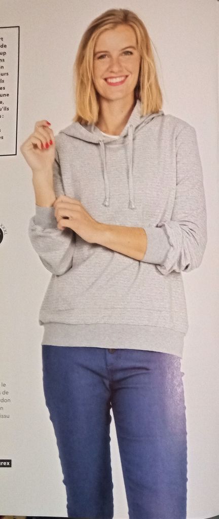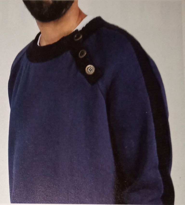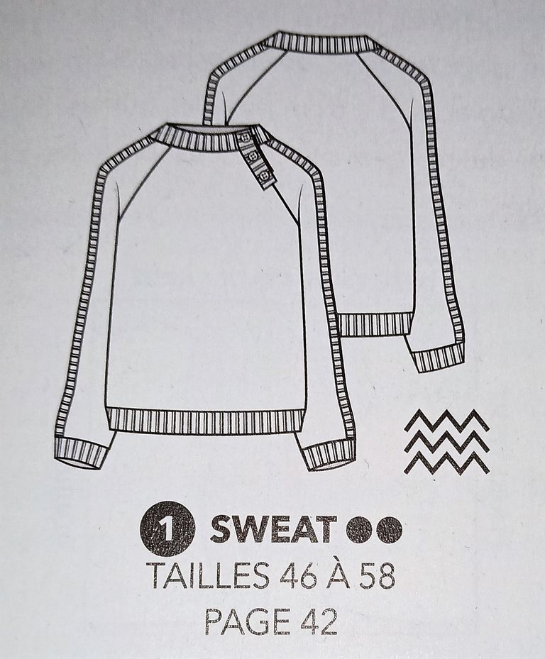 Mon dernier coup de cœur est ce sweat pour homme. Les manches sont raglans. L’originalité de ce modèle l’utilisation du bord-côte à foison , l’encolure, les manches mais aussi l’ourlet. Il va de la tailles 46 au 58.