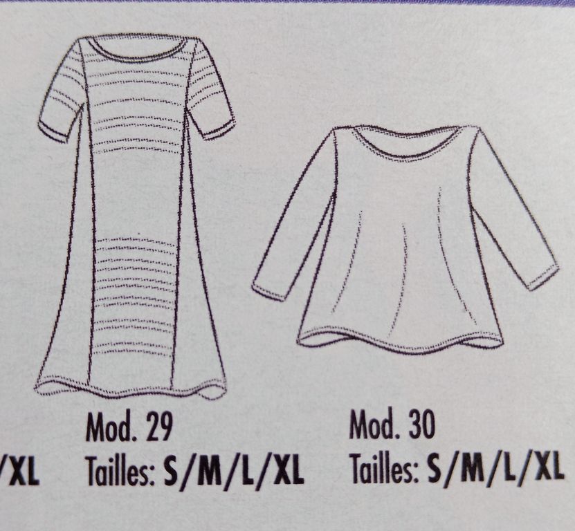 Des infos, vous aiguillerons pour le choix des tissus et de la coupe des vêtements. Pour chaque vêtement nous avons un cartouche reprenant les principales informations sur le patron.