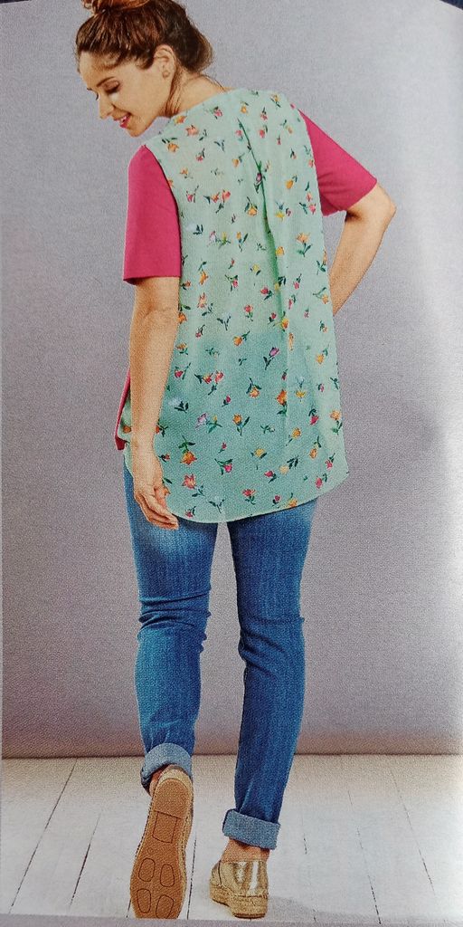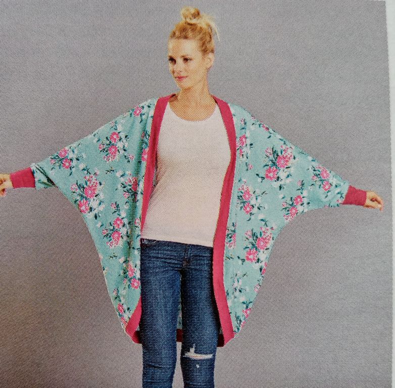 Ce gilet est décliné en plusieurs version, uni, avec de la dentelle et ici avec imprimés et bord côte contrastant. Je l’adore, c’est un basique qui donne envie de s’emmitoufler le soir, avant le couvre-feu… Une tuerie sur une petite robe noire, ou pour éclairer une tenue sombre.