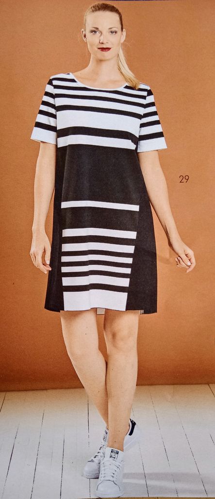 Mon dernier coup de cœur est pour cette robe à manche courte qui joue avec les différents tissus. Qu’ils soient à rayures ou non le mariage est réussi pour une robe unique.
