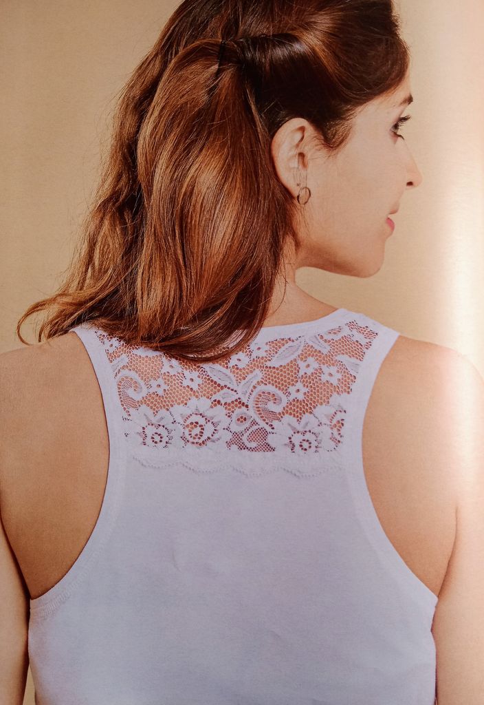Cette robe courte ou tunique à emmanchures américaine se voit garnie d’un empiècement en dentelle dans le dos. Nous avons donc une pièce plus élégante et raffinée tout en restant dans les looks pratiques.