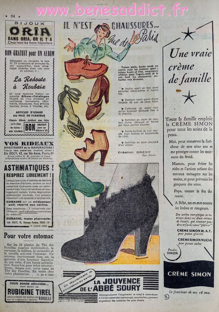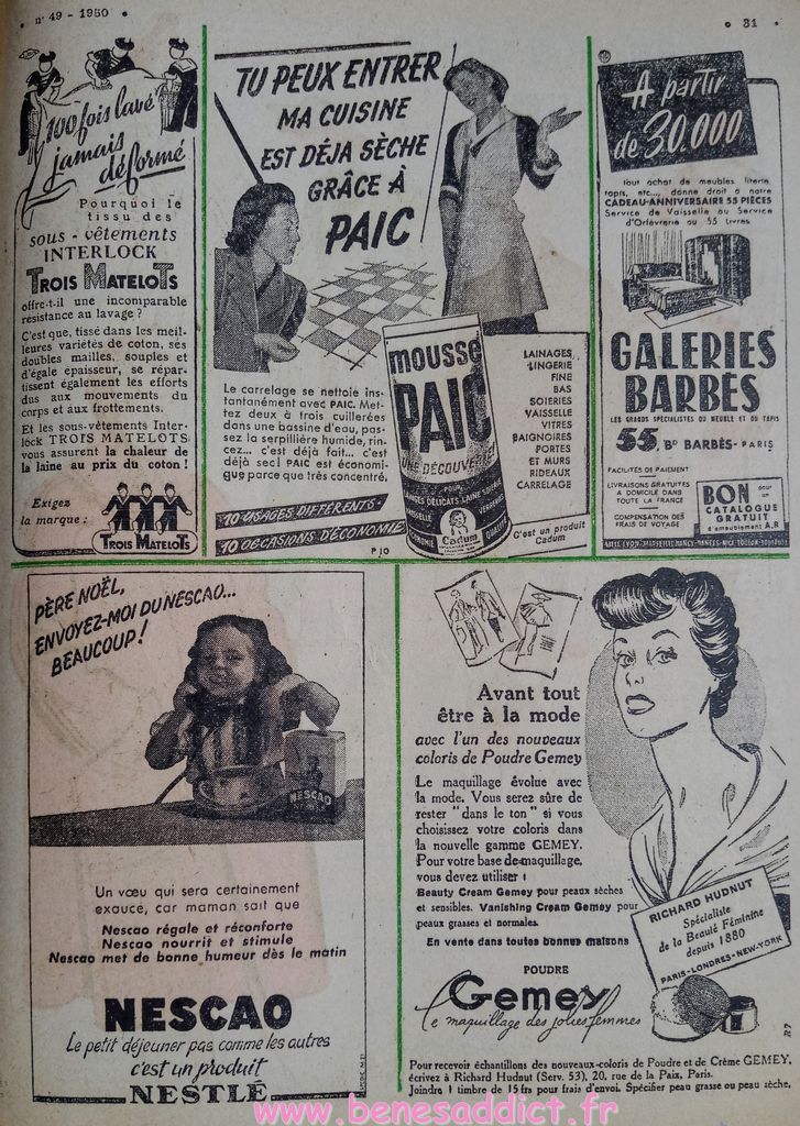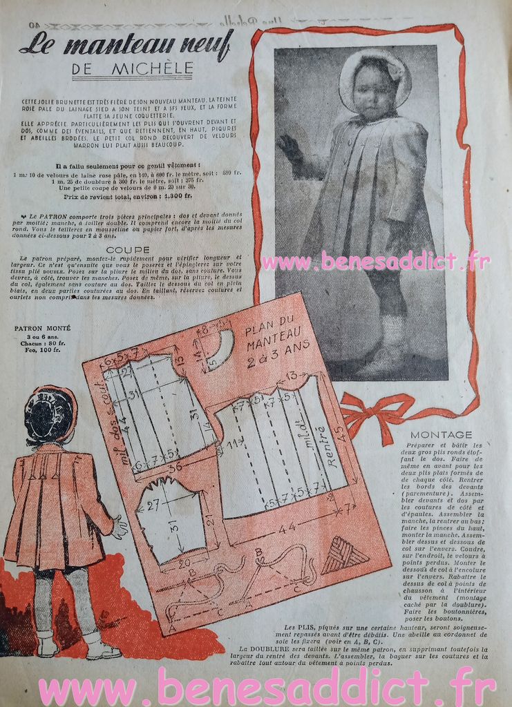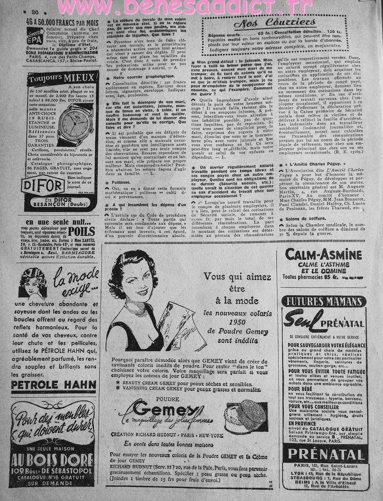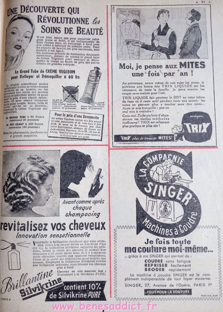 Bonjour, les créatives et les créatifs. Voici une cinquantaine de patrons des années 50, mais aussi des modèles de tricot, de broderie, de crochet, de très bonnes recettes de cuisine. Oui hier c’etait Lundi et le lundi c’est vintagerie. Il parait aujourd’hui avec du retard, car grosse coupure internet fixe et mobile depuis dimanche soir! Aujourd’hui, il s’agit de petits morceaux de revues de l’époque, comme je sais que vous aimez le courrier des lecteurs, vous trouverez votre bonheur. Des recettes de cuisine réveilleront vos papilles.