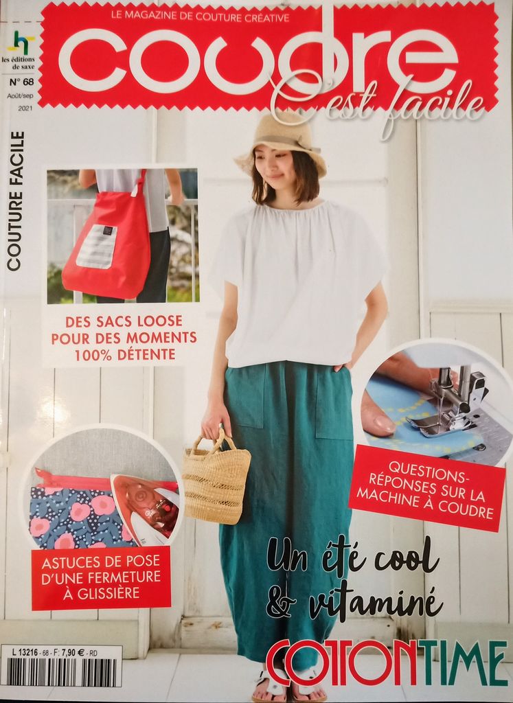 Bonjour, mes créatives et créatifs préférés! C’est vendredi la semaine se termine! Mais c’est aussi revue de Presse sur le thème d’un été cool! Pour le dernier « coudre c’est facile » que j’ai reçu hier! Je vous l’ai décortiqué avec plaisir. C’est une revue que j’aime beaucoup, car il s’agit en fait de « Cotton Time » une revue japonaise, traduite en Français par les éditions de Saxe. Surtout ce magazine est accessible à toutes et tous! Petit plus que j’apprecie le dos collé!
