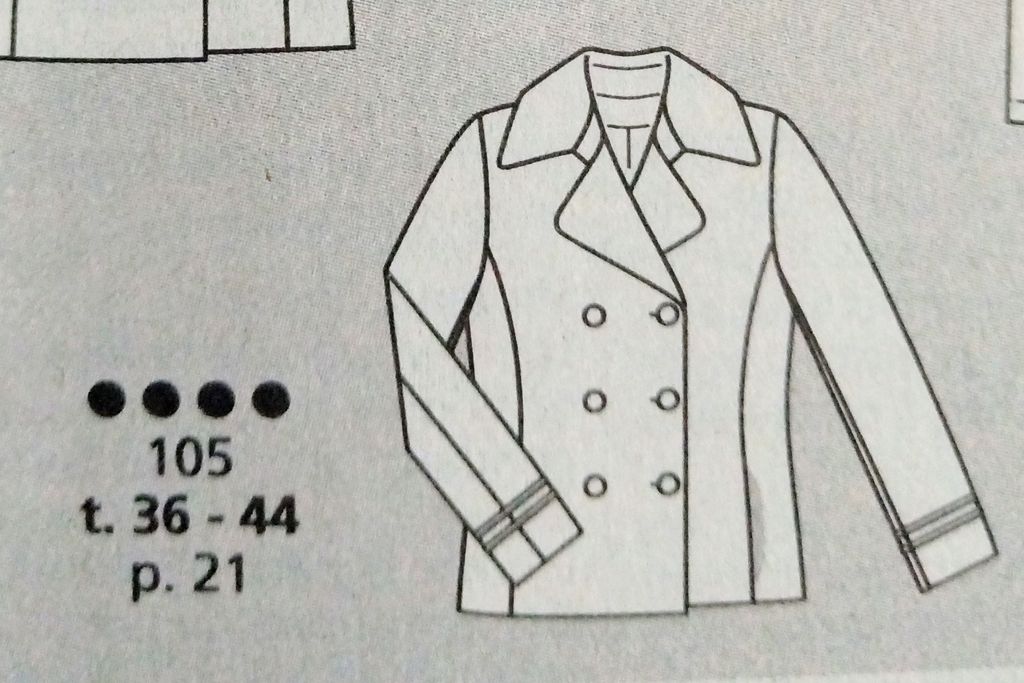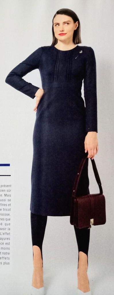 Je suis fan des cabans depuis les années lycées au siècle dernier. Mais à l’époque il s’agissait de modèles vintage, du moins dans les classes couture. Nous avons ici, un joli caban de couleur rouge, avec des boutons en métal sur un double boutonnage. La version de la revue est too-much avec les chainettes en bas de manches tailleurs. Si vous désirez le faire en lainage pour l’hiver, j’ai repéré celui ci dessous chez Mondial Tissus Certifié Oeko-tex. Composition 60% Laine 20% Coton 20% Polyamide.