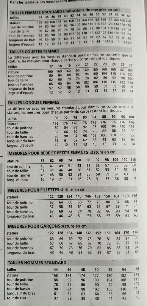 Le tableau des tailles