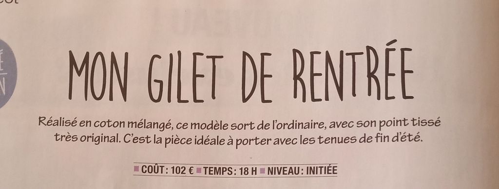 J’achète très rarement cette revue dans sa version basique. Sauf quand j’étais lycéenne, c’etait le trio, Prima, Modes et Travaux ainsi que la revue Avantages. Nous avions déjà un patron gratuit dans chaque numéro. Mais aussi du tricot et un peu de loisirs créatifs. Dans cette édition nous avons le patron d’une tunique chemise que je trouve plutôt sympathique.