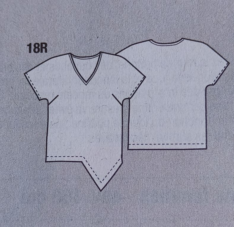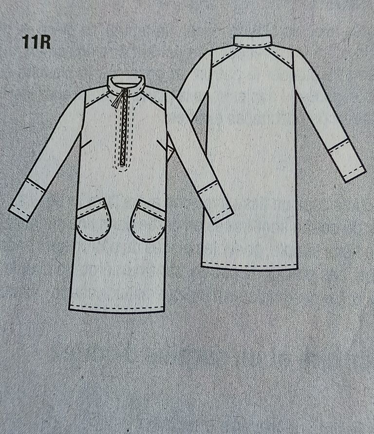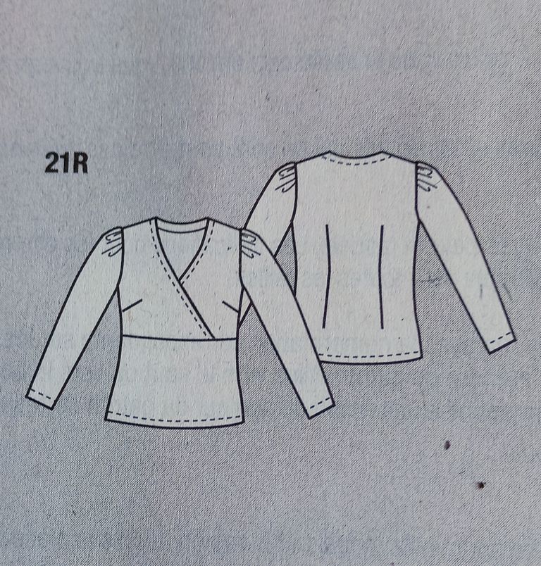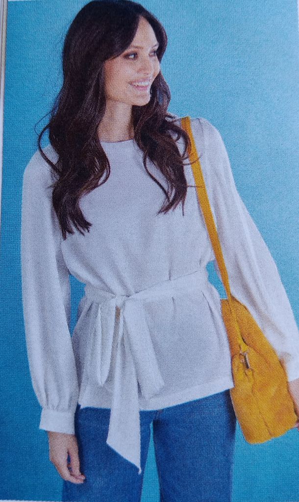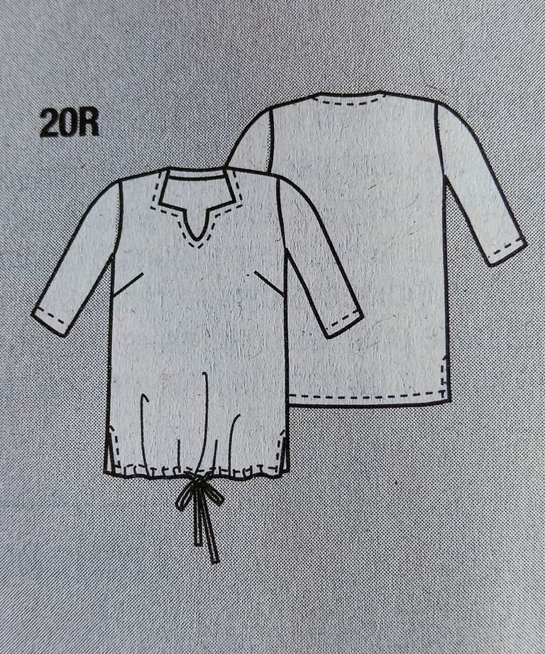Cette tunique de prime abord semble toute simple, mais regardez son dos et cette ouverture. J’aime beaucoup. En rajoutant l’écharpe, je trouve que l’effet est plutôt sympathique. L’encolure est ronde, le dos est ouvert avec un empiècement. . Les manches sont longues et froncées dans le bas sur une bande de poignet.