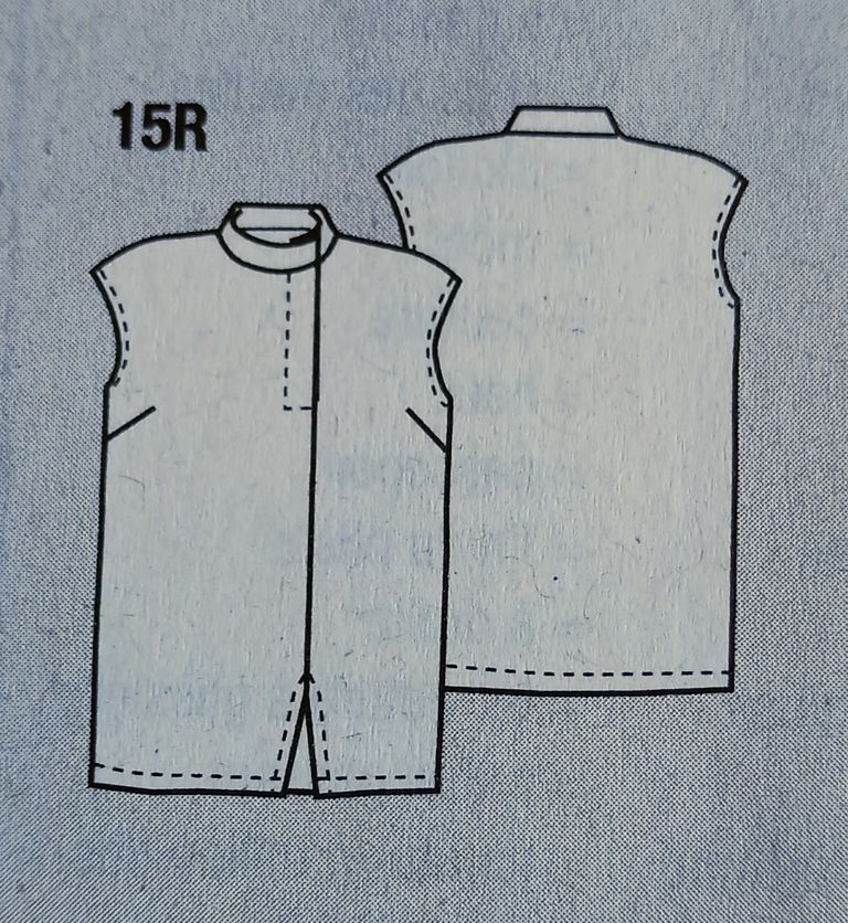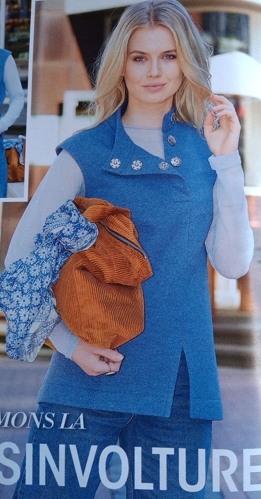 Mon dernier coup de cœur est pour cette tunique que je verrai plutôt en veste sans manches à enfiler. Bien plus élégant qu’une doudoune sans manches. Ici aussi le point de mire est son encolure qui peut se porter ouverte ou fermée.