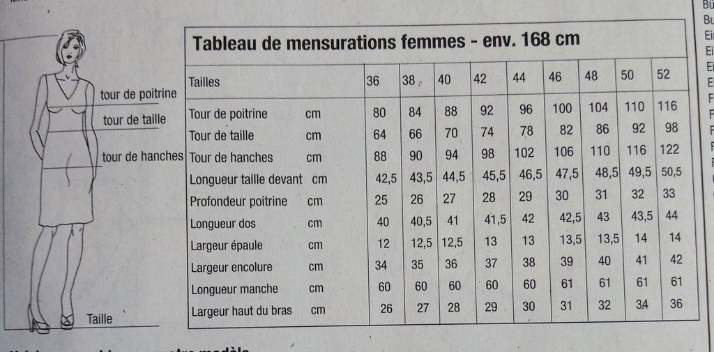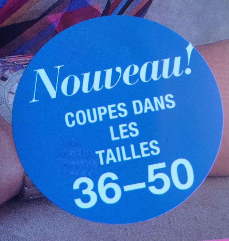 Grande nouveauté! Tous les modèles de la revue vont du 36 au 50! Une revue qui prend enfin en compte les remontés des lectrices. Bon, le macaron de la couverture n’était pas claire à mon gout. j’ai donc vérifié.