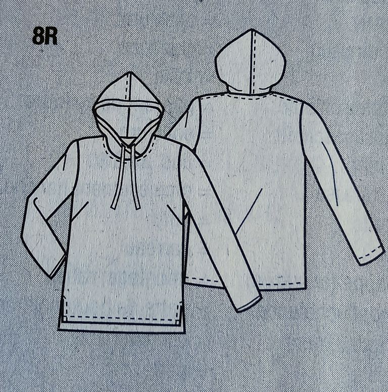 J’adore ce pull, bravo pour l’originalité. L’ourlet est asymétrique, encolure est originale comme vous pouvez le voir. Les manches sont étroites jusqu’au coudes et froncées.
