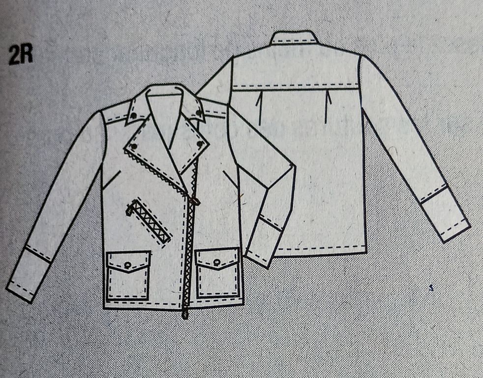 J’adore ce perfecto simplifié. Pas de pattes d’épaules. Ce truc c’est une plaie quand on porte un sac à dos ou un sac à bandoulière. Ce modèle, possède un empiècement dos et devant. Les poches sont plaquées avec rabats, plus facile à coudre. Le perfecto se ferme à l’aide d’une fermeture à glissière double curseur.