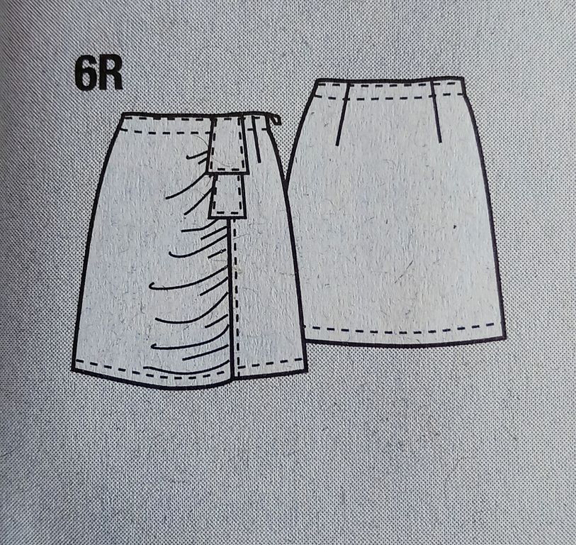 Cette jupe elle aussi possède beaucoup de charme, de forme légèrement trapèze. Son devant est en deux parties avec un coté froncé qui cré un drapé et deux petites pièces partant de la taille. Elle est en une seule pièce dans le dos.