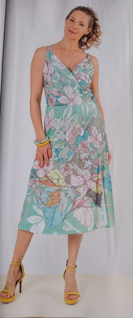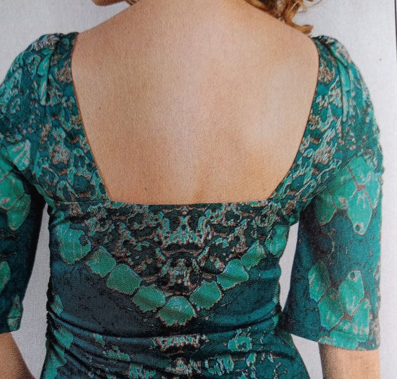 Mon premier coup de cœur est pour une robe forcement. Ce modèle sublime les courbe avec une grande encolure carrée dans le dos mais aussi un large V sur le devant. Le point de mire de ce modèle se trouve sur la poitrine avec cet anneaux dans lequel le tissu vient se draper. Ce genre de modèle convient parfaitement pour les tissus imprimés.