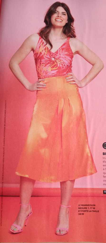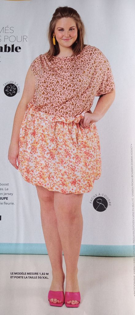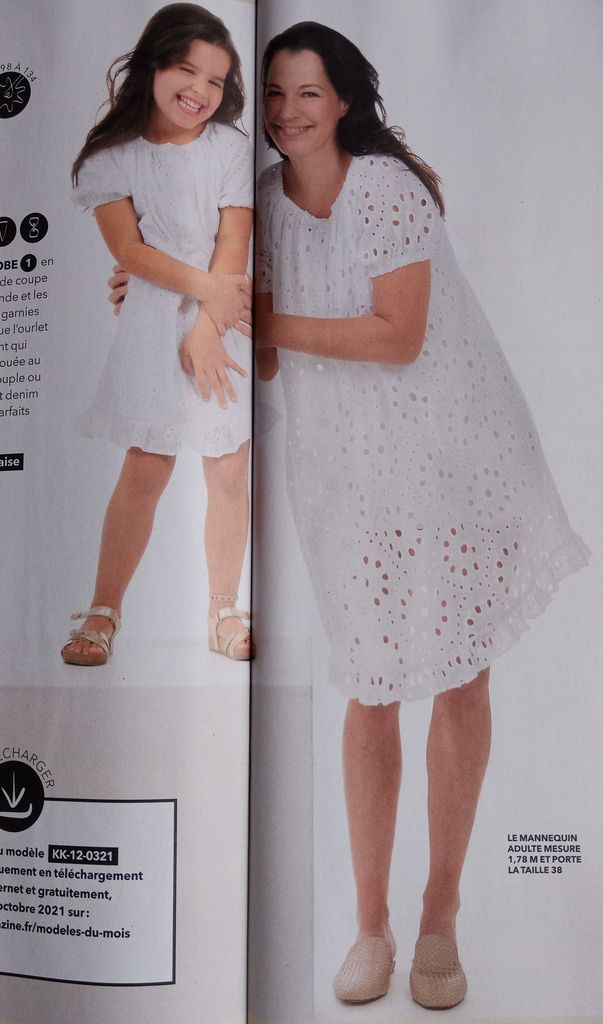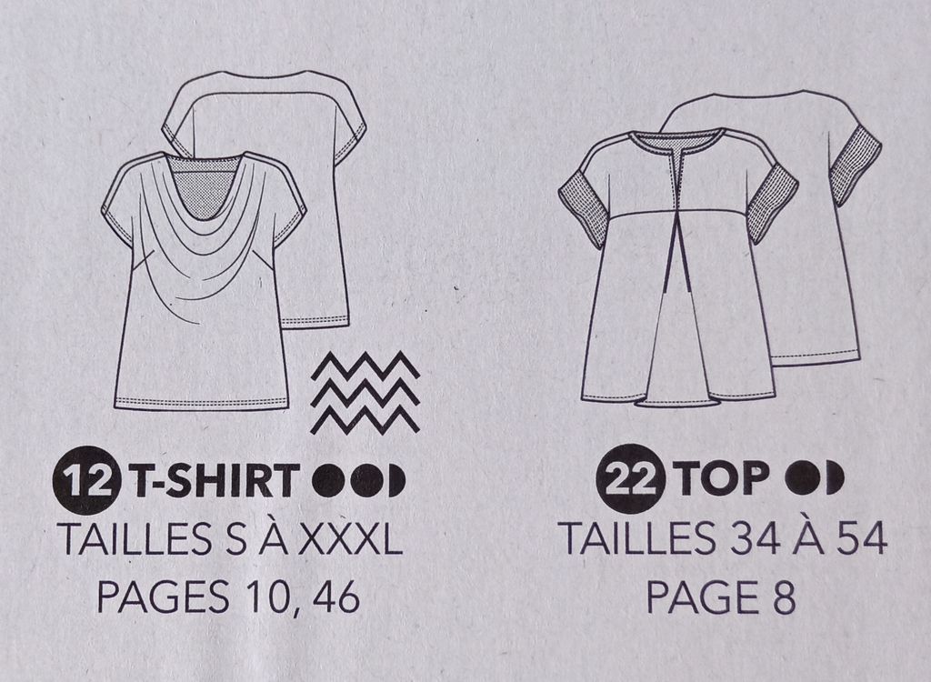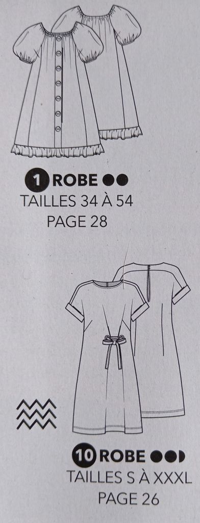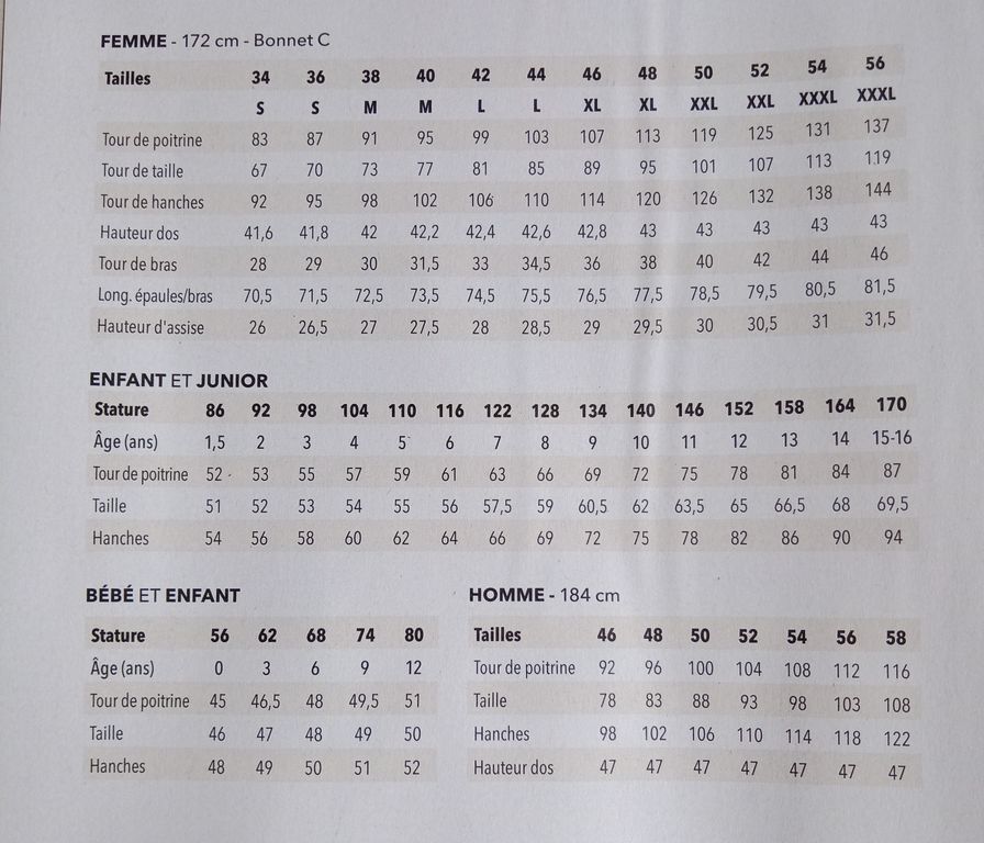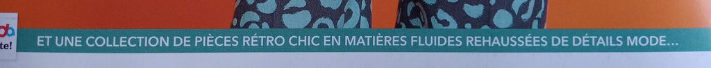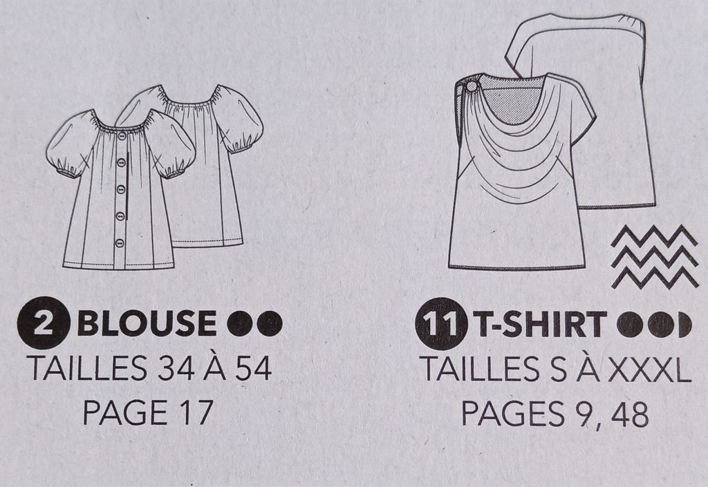 Ce macaron met en avant ce que j’aime particulièrement dans cette revue. En effet, tous les patrons vont du 34 au 54. De véritables petites tailles, mais aussi des grandes tailles. On peut craquer sur un modèle sans devoir vérifier si nous trouverons notre taille. C’est génial je trouve!