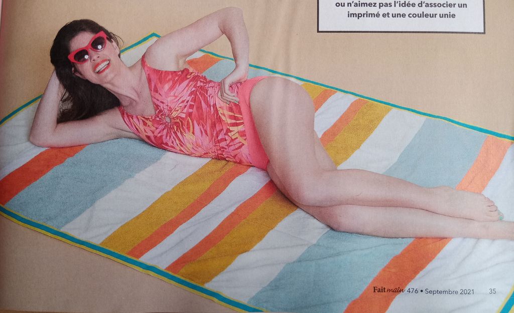 Je suis contente de retrouver des accessoires à coudre Comme le sac, ou bien le drap de plage.