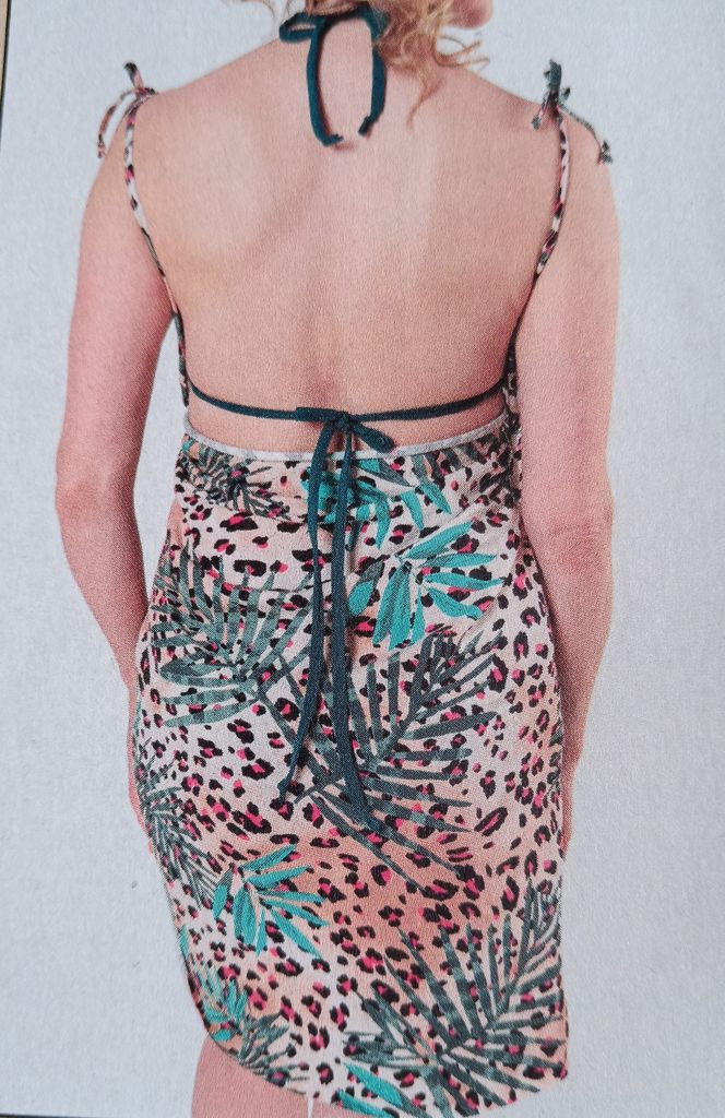 Encore une robe, oui, vous pouvez me faire la remarque. Il s’agit ici d’une pièce cache-cœur un peu sage à mon goût malgré les petites bretelles réglables. Elle se ferme à l’aide d’un lien à la taille. Elle me fait penser aux tutus de danse. Je casserais ce côté sage par un tissu rock!