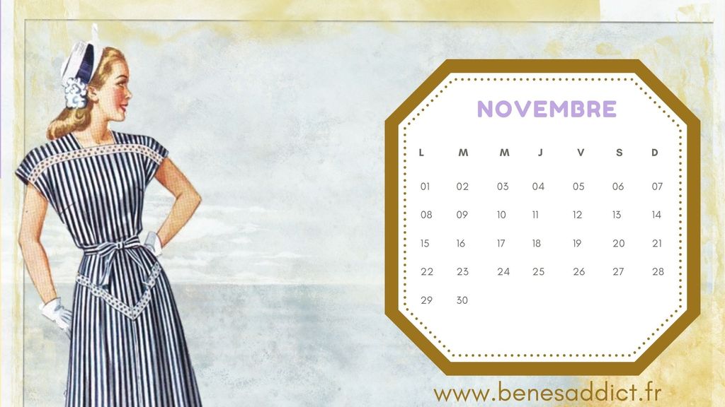 Calendrier Mensuel D’Inspiration Couture Vintage à Télécharger et Partager!