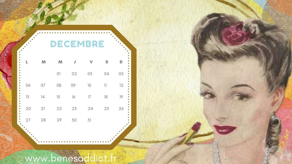 Mercredi généralement c’est revue de presse. Pas aujourd’hui, car pas de revues actuellement autres que celles habituelles. Donc je me suis amusée a vous créer un calendrier d’inspiration vintage. Je vous en fait profiter en ayant la certitude qu’il vous plaira. (Vous la sentez la confiance que j’ai en moi)? Non plus sérieusement j’espère que vous l’aimerez.