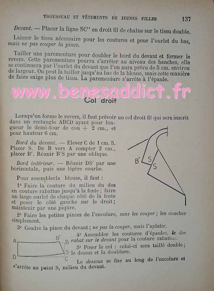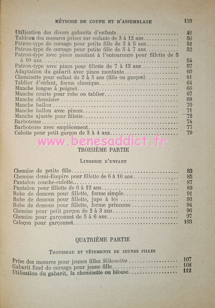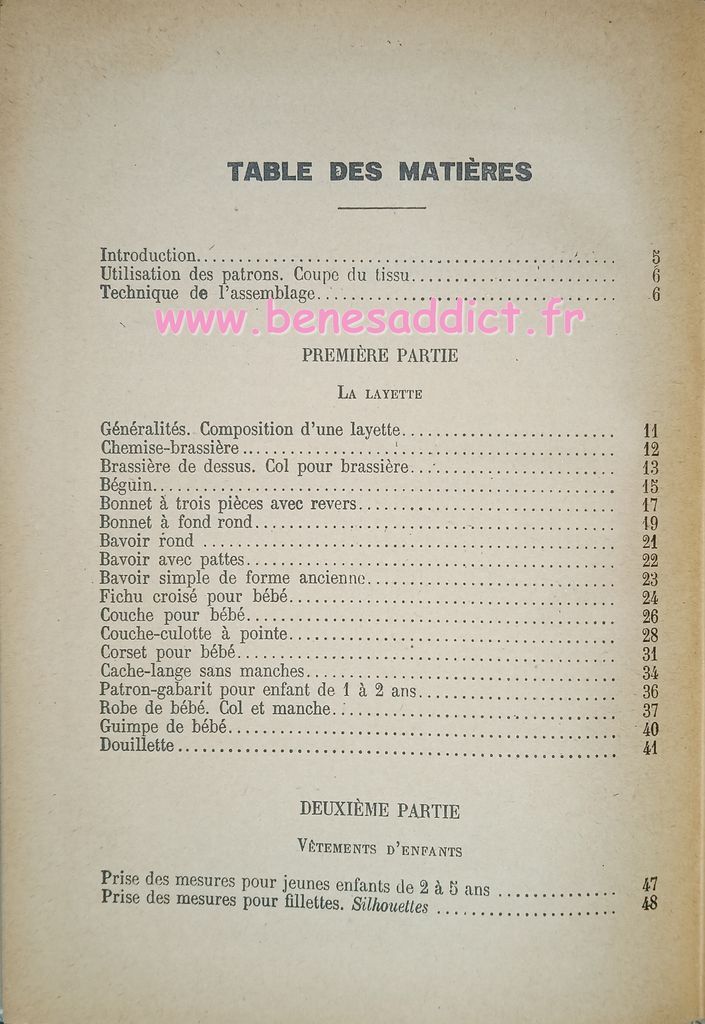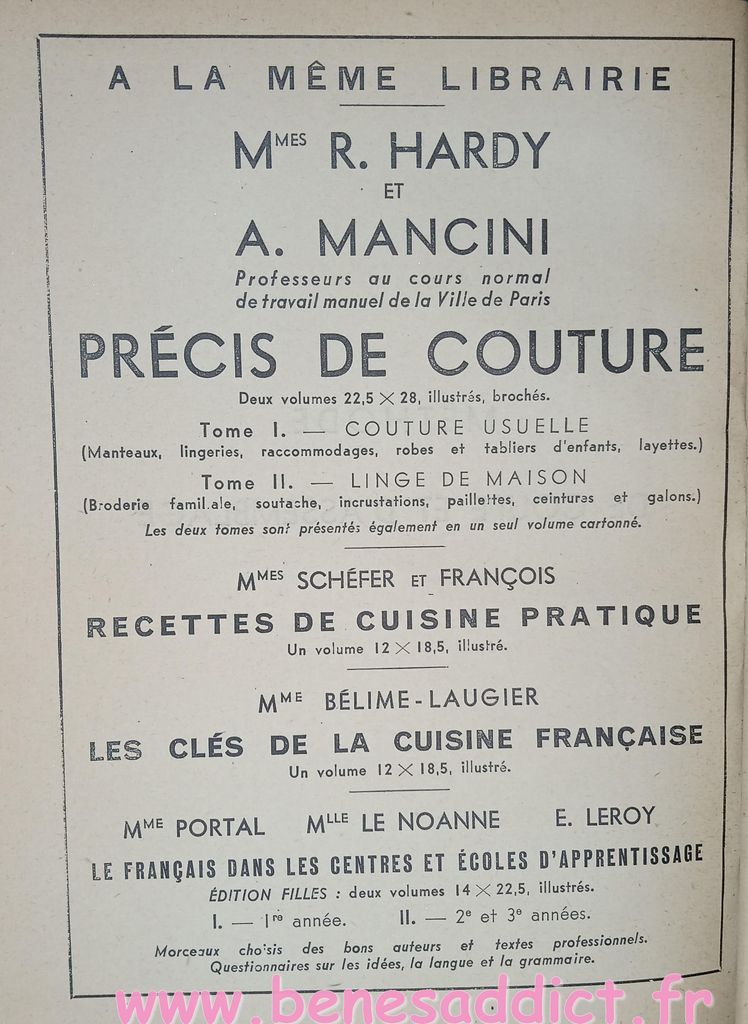 Ce livre de 150 pages était destiné aux filles des écoles primaires, et de préapprentissage. Qui devenaient de futures mamans et pouvaient ainsi de coudre la garde-robe de bébé mais aussi des enfants.Il n’empêche que nos grand-mères étaient douée pour la couture et la coupe. Nous n’étions pas dans une époque de mode jetable, comme aujourd’hui.