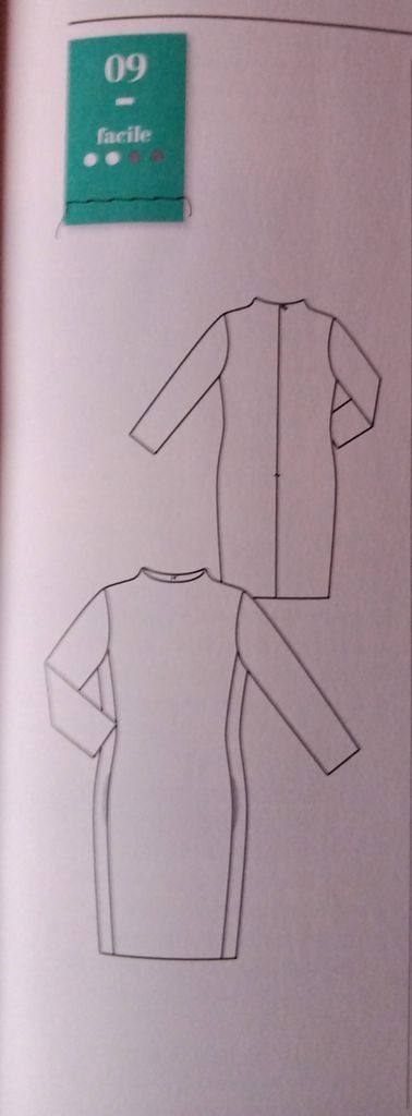 J’aime l’originalité de cette robe fourreau. Elle est sage devant avec une encolure ronde, et des pinces partant de la taille. Le dos lui voit une encolure en V pour montrer le cou et le haut du dos.