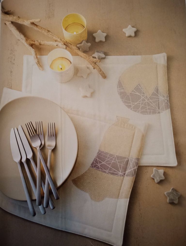 Les sets de table assortis, cloche et boule de Noël en appliqué feront sensations sur la table de fête!