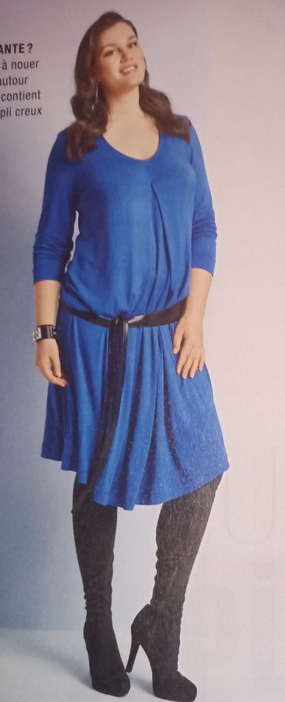 Grande fan des robes, celle-ci m’a tapé dans l’œil. Elle est réalisé en maille. Le devant est froncé entre les seins sur une découpe en pointe. La jupe est garnie de deux découpes, enfin les manches sont longues. J’ai choisi deux tissus qui peut être pour les fête avec un léger côté brillant, mais pas trop non plus afin de pouvoir sortir la robe du placard le plus souvent possible.