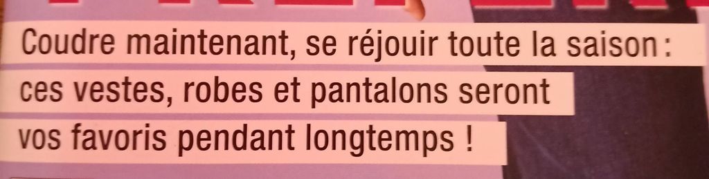 La rédaction nous encourage à coudre maintenant, nos pièces favorites. Que ce soit veste ou même manteau tout comme les pantalons. Les vêtement que nous réalisons ont une durée de vie plus longue que la fast-fashion que l’on trouve dans les magasins à des prix dérisoires.