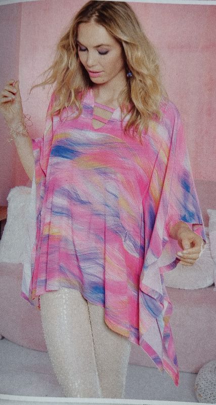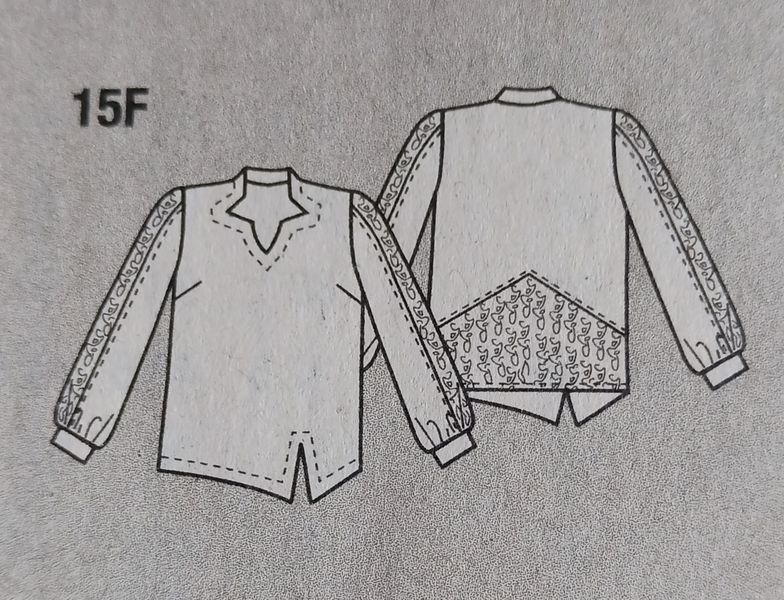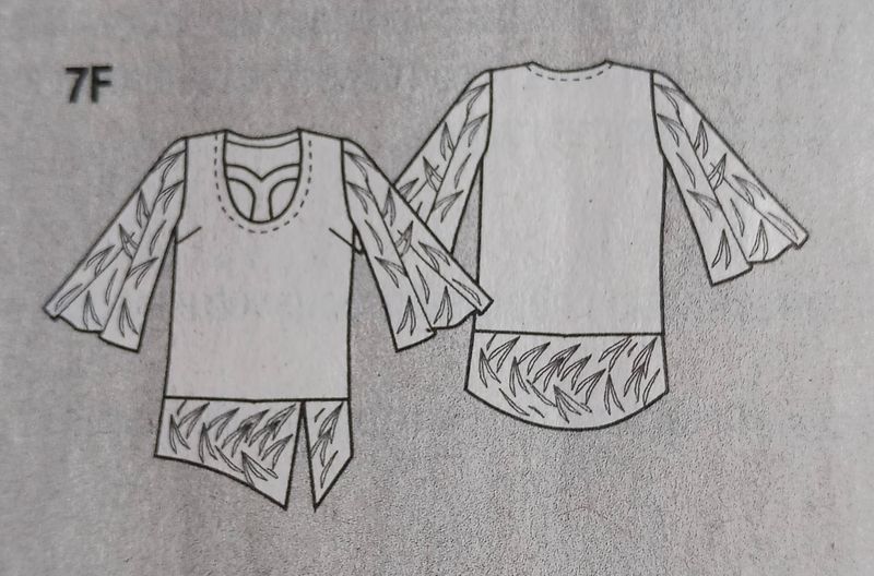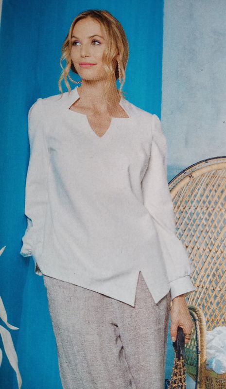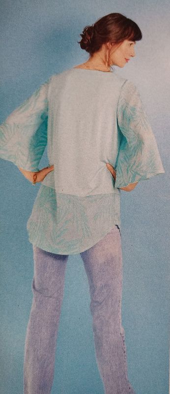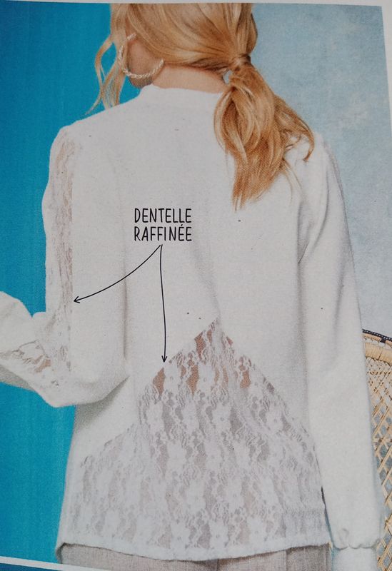 Dernier coup de cœur pour cette tunique avec une encolure en forme d’étoile. Elle possède des empiècements en dentelle sur les manches. Le devant est fendu dans le bas. Le dos est garni d’une large pièce en dentelle.