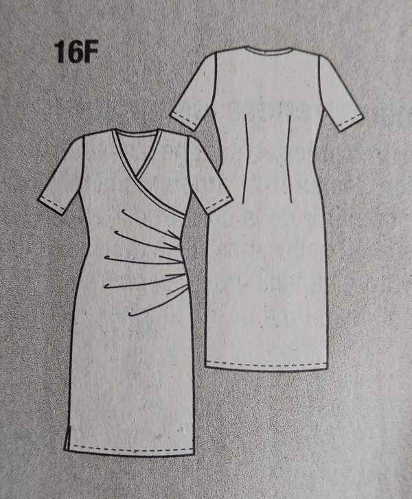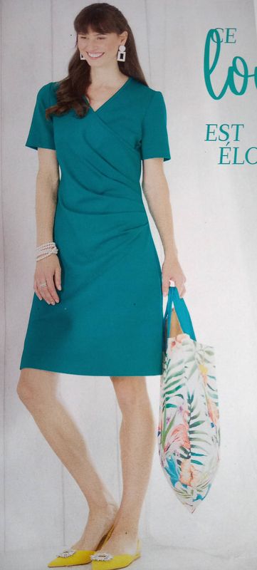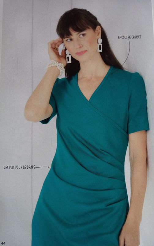 Une robe dans mon top, oui il en faut toujours une! Elle est drapée sur le côté. Avec une encolure en V. Des pinces dans le dos vont ajuster la robe.