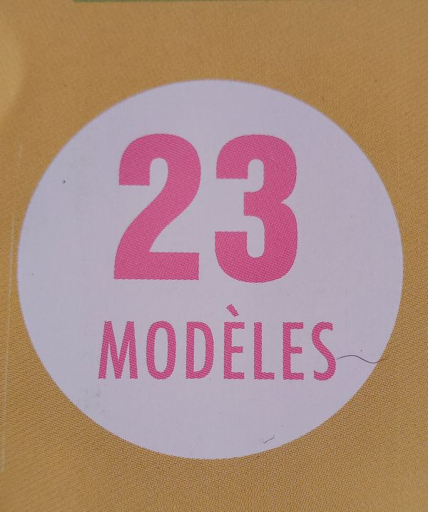 La transparence est toujours apprécié, d’où la présence de ce macaron. Il nous indique le nombre de modèles présents dans la revue. Ici nous en avons 23, c’est pas mal je trouve!