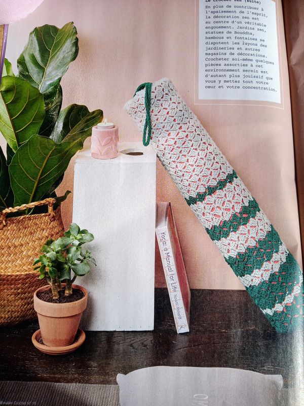 Ce bandeau nous en dit plus sur le contenu de ce numéro, des vêtements, mais aussi de la déco, tout comme des accessoires, pour méditer en toute tranquillité. Crocheter fait parti des instants méditatifs que j’apprecie…