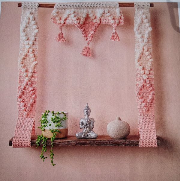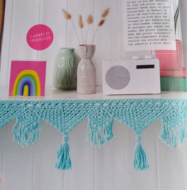 Je trouve superbe cette étagère sublime. Allier le crochet et le bois, donne un résultat étonnant!