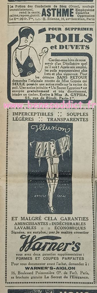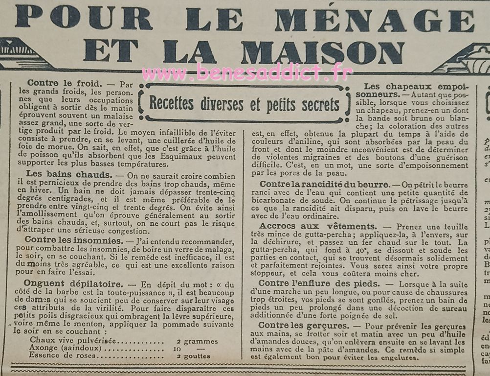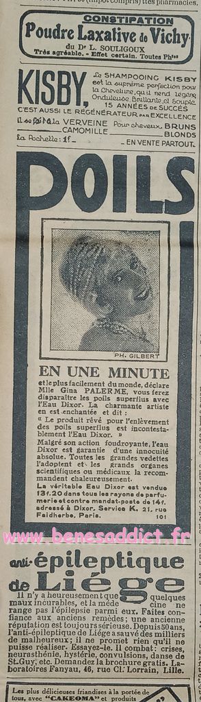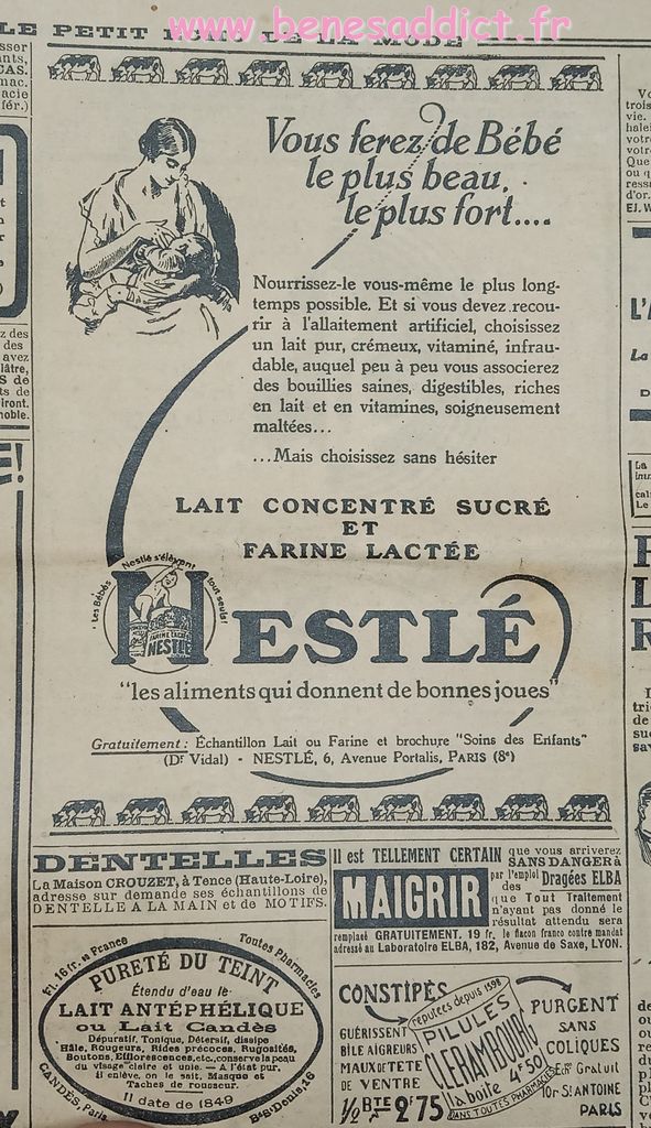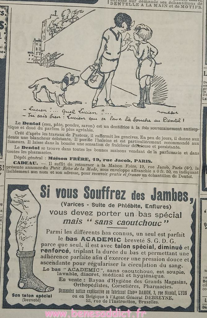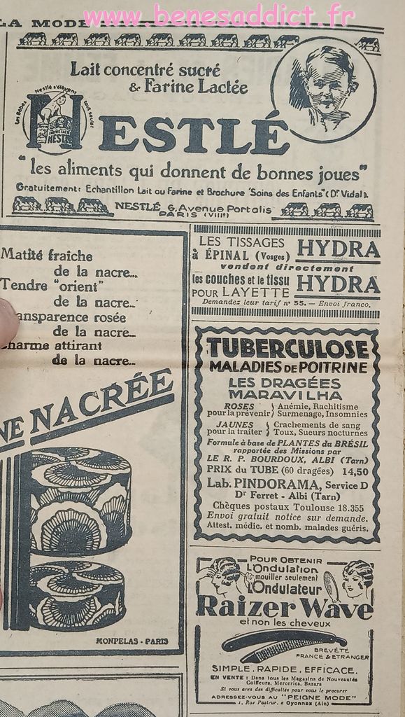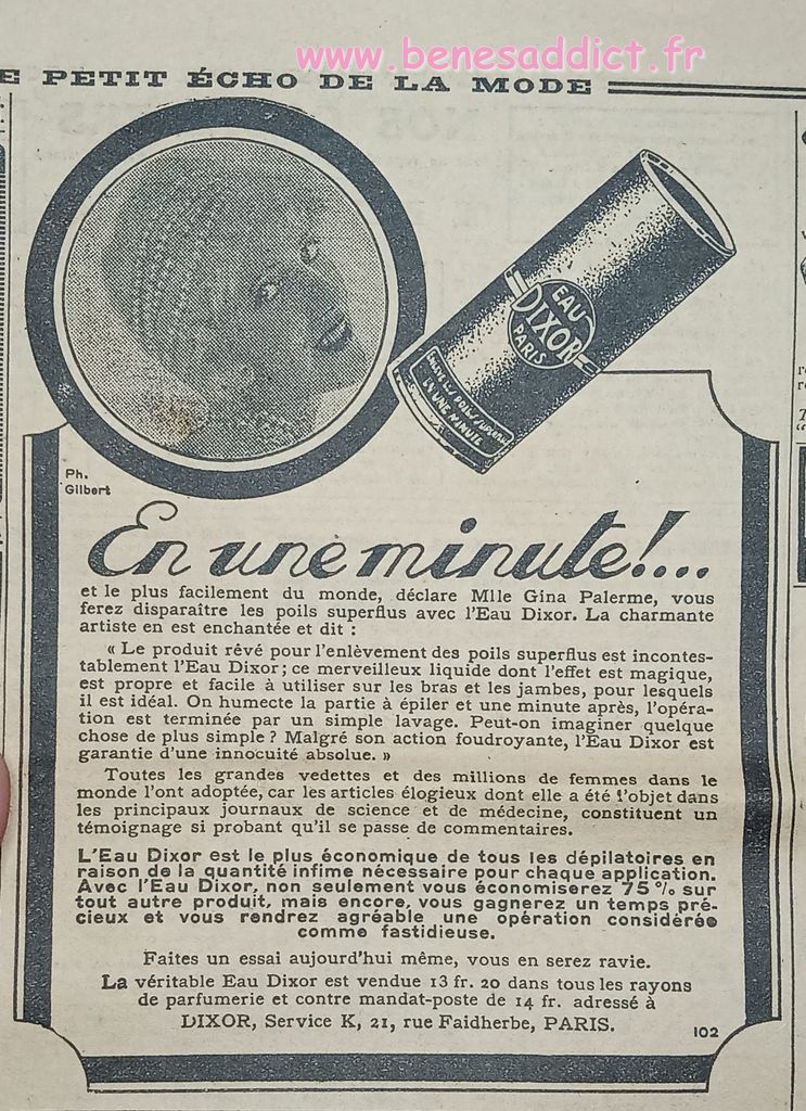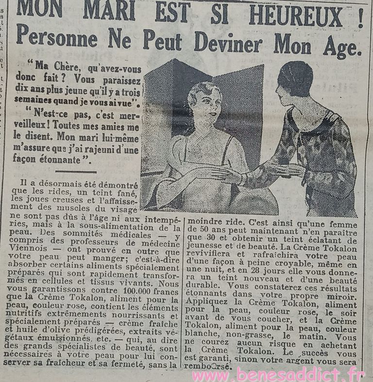 J’ai toujours autant de plaisir à effectuer chaque voyage dans le passé à la recherche de ces petites pépites qui vous feront sourire. Tout comme les « réclames » ou publicités de l’époque. Il est triste de voir, le culte de la femme belle, sans poils, sans cheveux blancs etc… Autre époque mais la finalité est toujours la même. Sois belle.