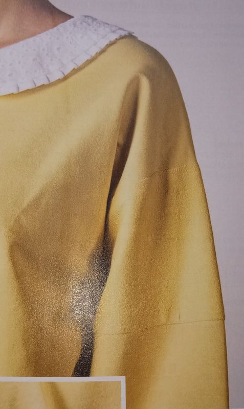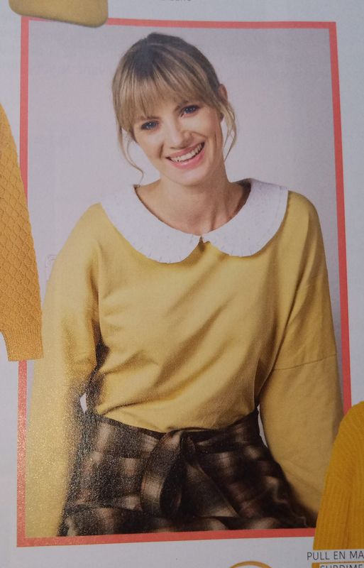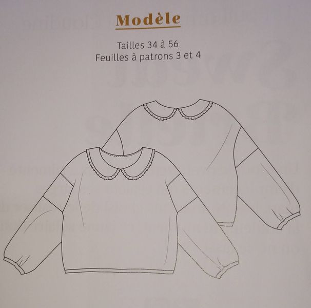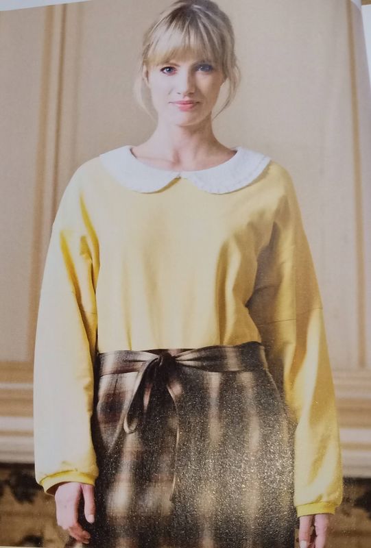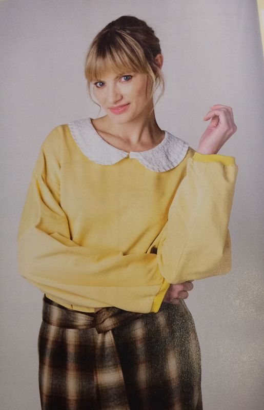 J’adore ce sweat! Un modèle élégant avec une large encolure rode bordée d’un col Claudine. Les épaules sont basses, les manches avec un empiècement sont terminées par un bord-côte, tout comme l’ourlet.