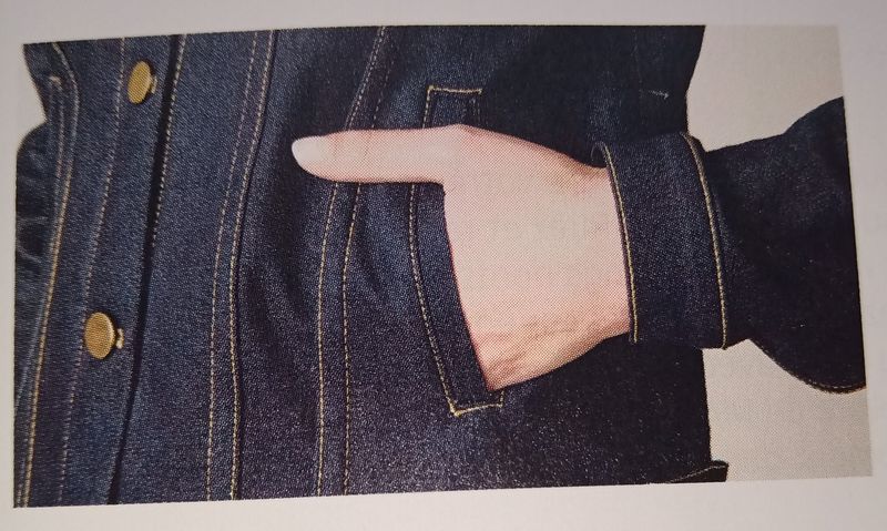 On repart dans la séquence nostalgie. Avec ce blouson en jean. Au lycée une amie avait réalisé le même modèle mais en cuir, c’etait une tuerie. Revenons à nos moutons, ce modèle est selon moi unisexe. Prés du corps, tous les détails sont soulignés de doubles surpiqures.
