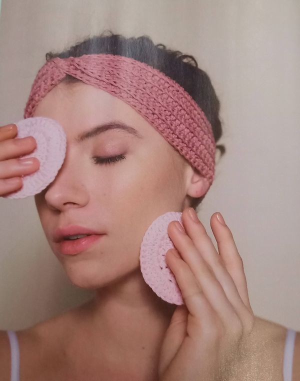 Crochet beauté, version zéro déchet, avec les lingettes et le bandeau.