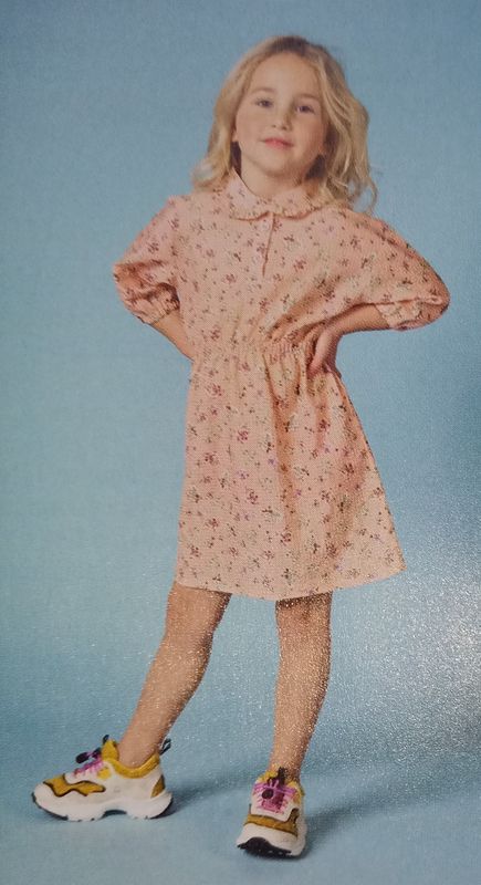 Un col Claudine et des manches bouffantes , et les petites filles seront ravies de leur robe de fête. Ce sont deux valeurs sûres.