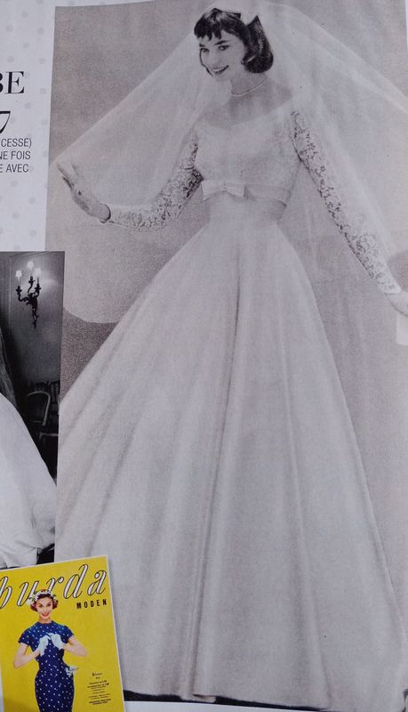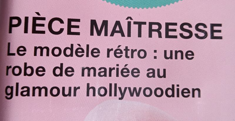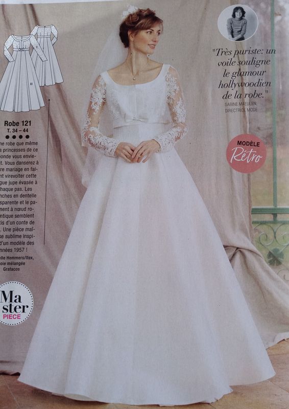 Là, je dis oui! Nous avons une robe de mariée, réactualisation d’un modèle sorti dans les années 50. Très glamour et digne des plus beaux films d’époque.