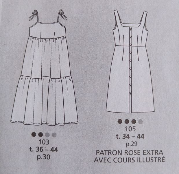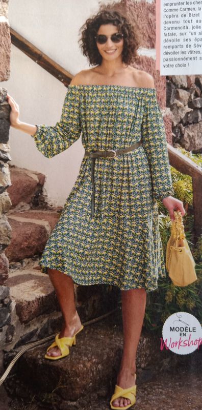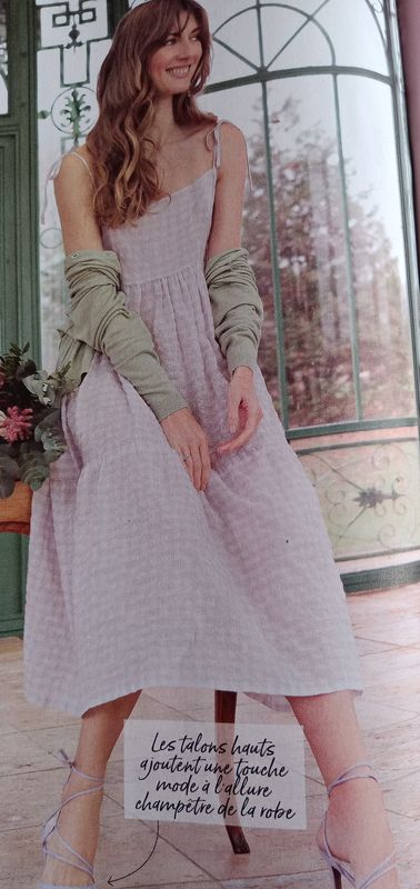 Nous avons deux tutos complets avec images, comme dans tous les numéros. Ici, il s’agit d’une robe à bretelles et une robe Carmen.