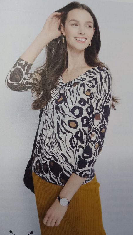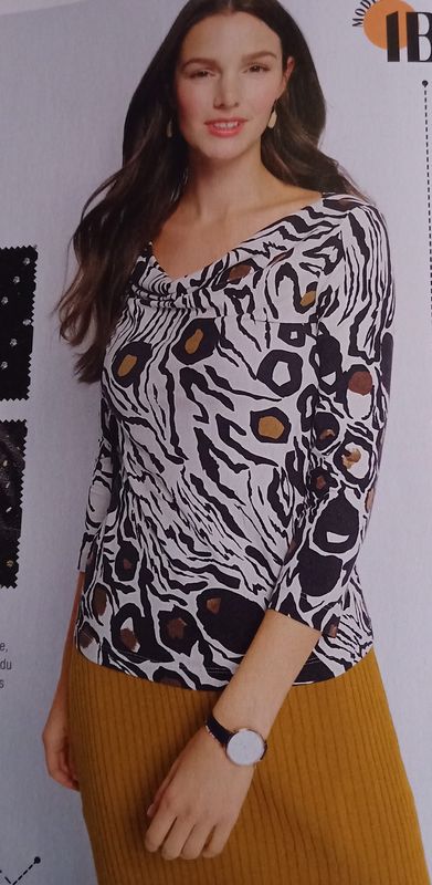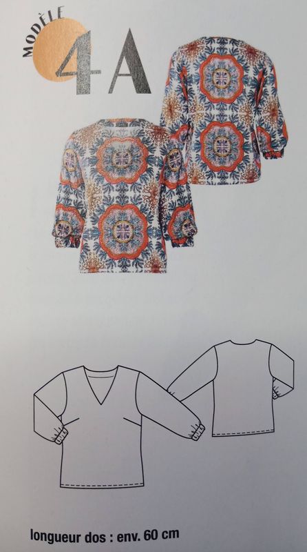 J’aime beaucoup cette version de blouse à manches trois quart, et encolure bénitier.