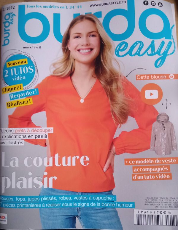 Bonjour, les créatives et créatifs! Vous aussi, lorsque vous vous mettez devant votre machine à coudre c’est couture plaisir? C’est aussi le thème du dernier Burda Easy, qui est la revue parfaite pour les débutantes, mais aussi celles qui aiment les patrons découpables, en plus avec de supers tutos.