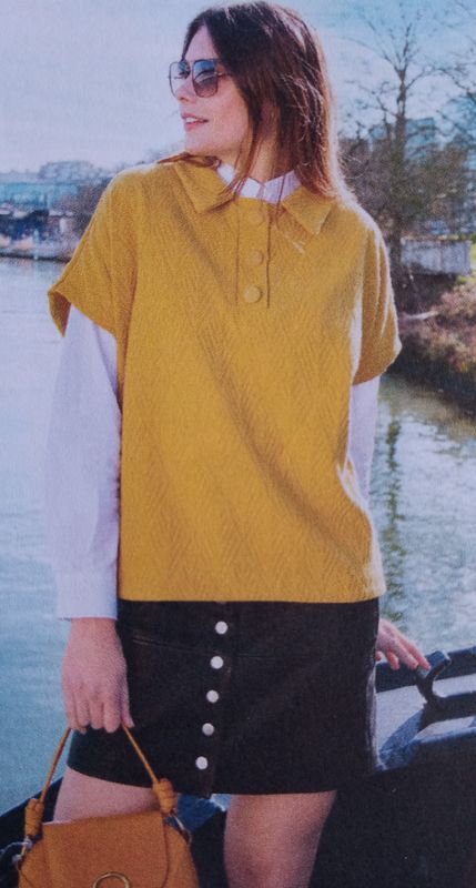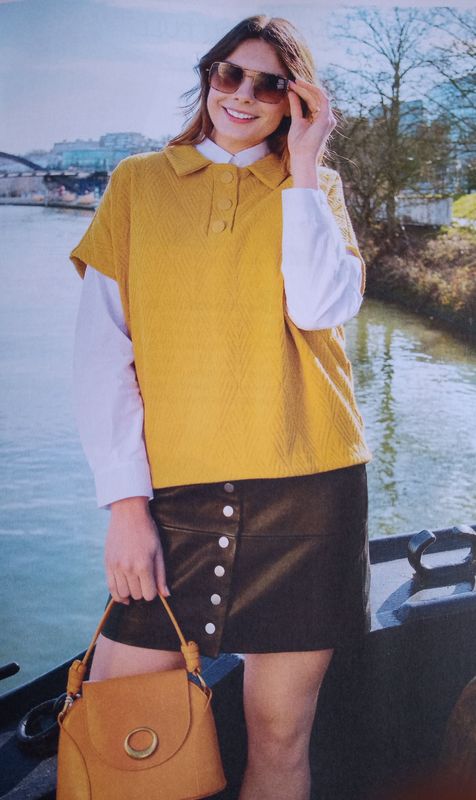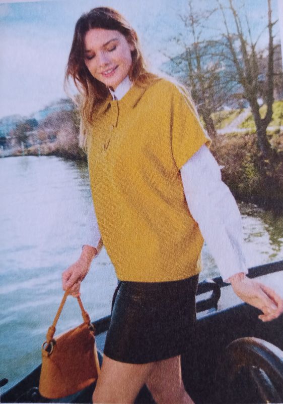 J’aime beaucoup ce pull sans manches et col polo. Il est simple légèrement ample avec les mancherons à même.